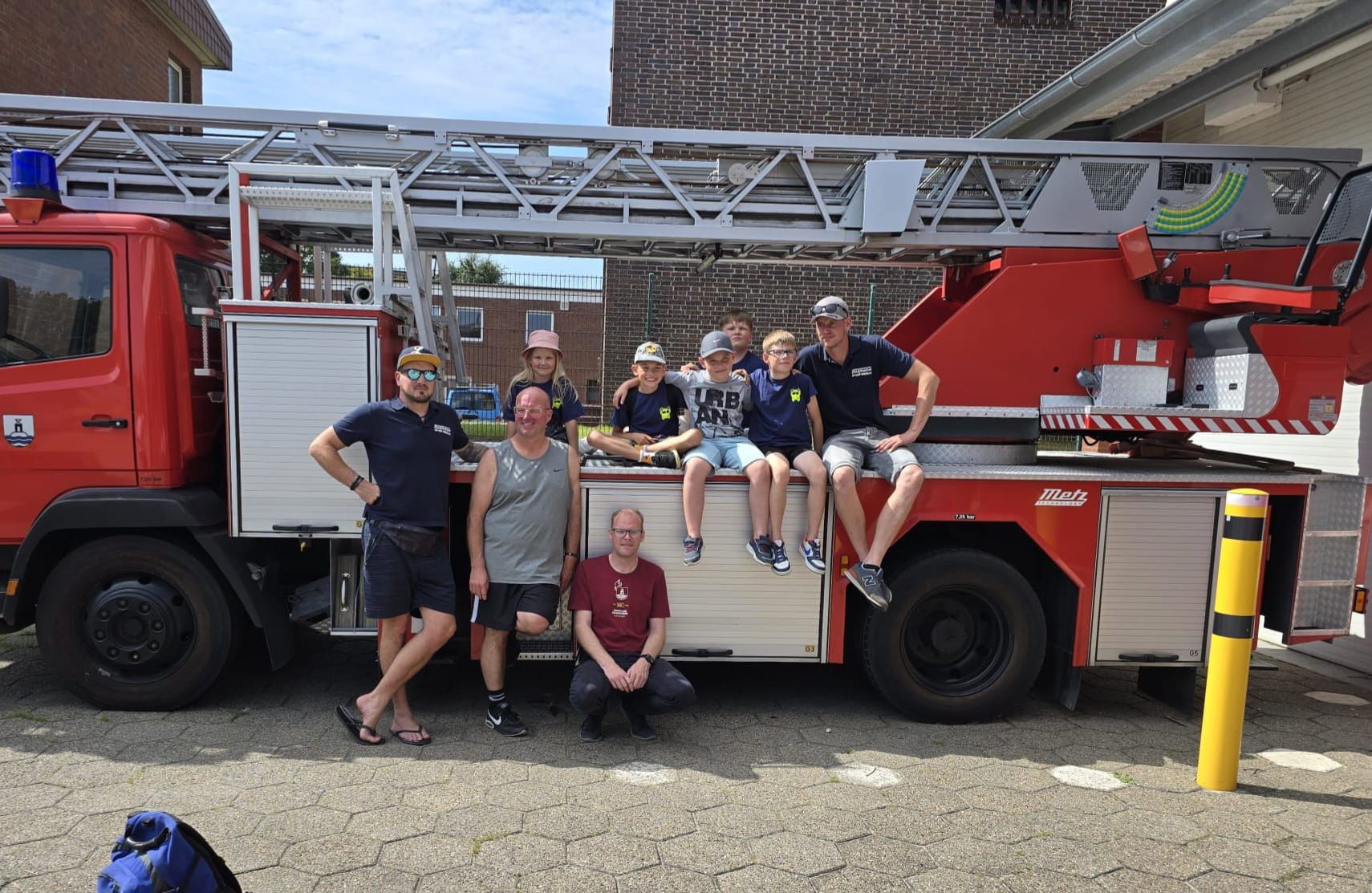 Hier gab es gleich bei der Ankunft gleich die nöchste Überraschung die Löschknirpse wurden von der Feuerwehr Norderney abgeholt und zu ihrem Standort gefahren. Im Feuerwehrhaus angekommen gab es eine herzliche Begrüßung und dann eine ausführliche Führung den Kids wurde alles gezeigt und viele Fragen wurden beantwortet. Nach der Führung wurde noch einiges ausprobiert, bei herrlichen Wetter mit der Kübelspritze rumgespritzt und zum Abschluss zusammen gegrillt.